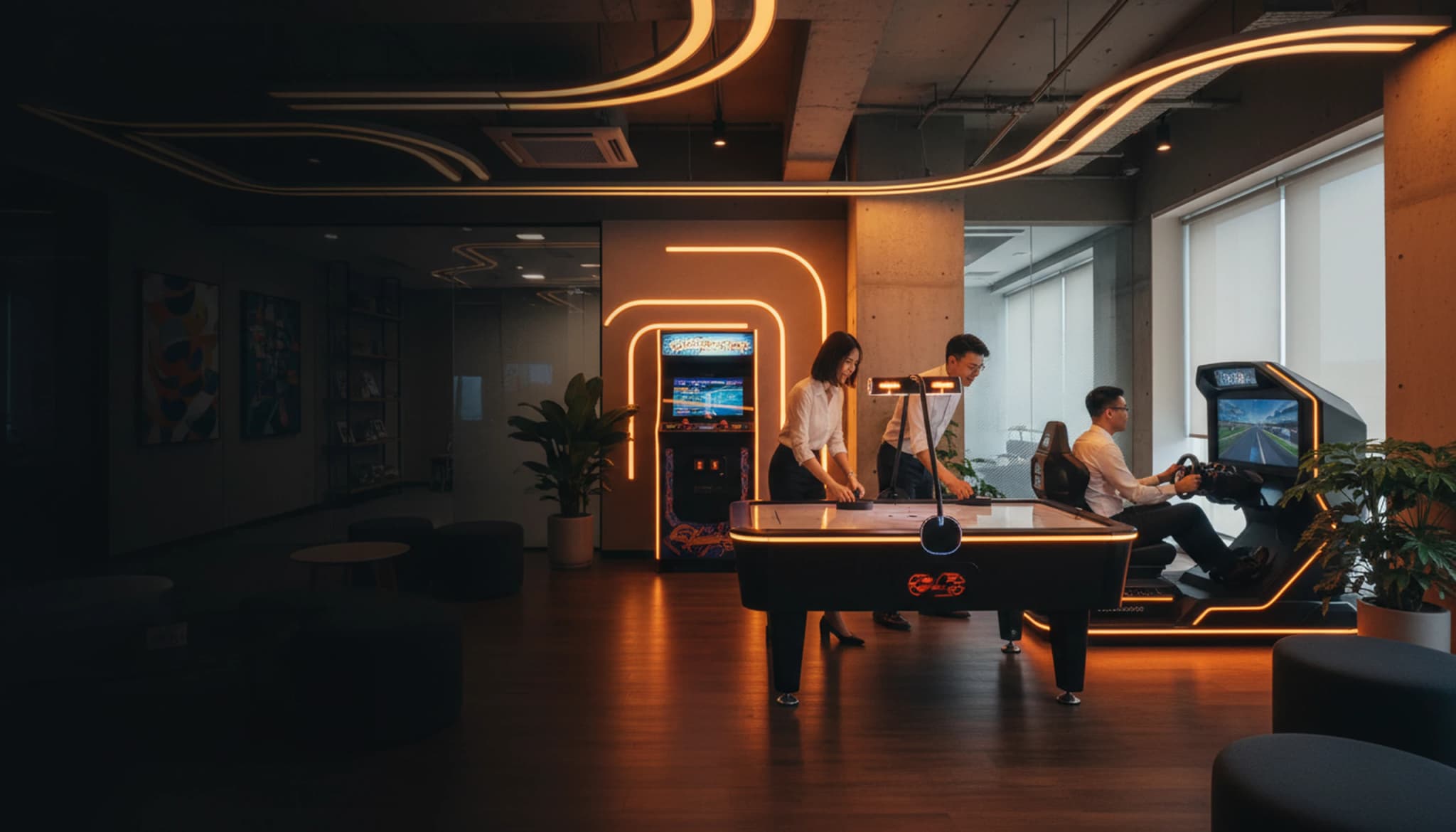 From racing simulators to classic arcade cabinets—find the perfect mix for your workplace.
